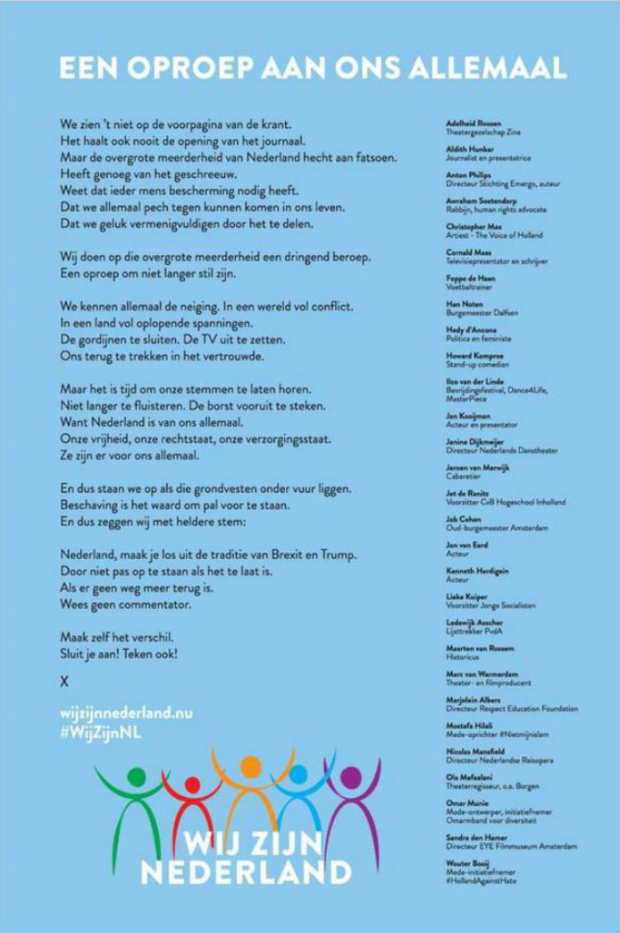 Wie dat allemaal ook vindt, moet als de bliksem naar de website wijzijnnederland.nu en die actie ondersteunen door ook te tekenen. En . . . blijf je uitspreken. De strijd is nog maar net begonnen. We zullen winnen!